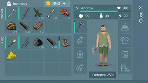 6、当你打开背包,映入眼帘的是已收集到的各类食物与工具。请务必妥善保存,以便随时应对可能突发的紧急状况。