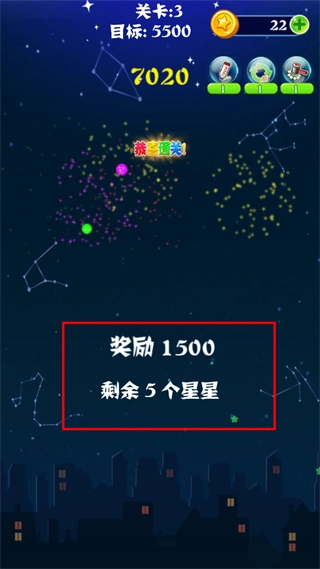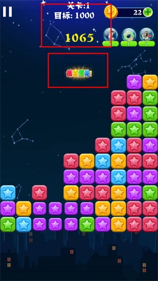 4、当再也没有可消除的星星,且分数达到规定标准时,就能顺利通关。