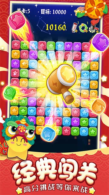 【简单玩法】采用休闲的点消玩法,只需点击相邻的同色星星就能消除并得分,操作简便极易上手,无疑是轻松益智小游戏的不二之选。