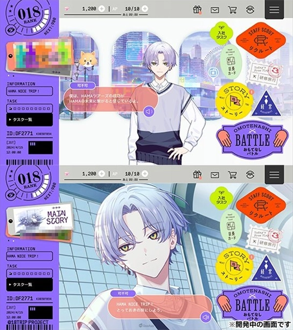 可连结至各种游戏功能的主页面中,能够切换Live2D 或插画,登入时的语音也会随设定的区长而有变化。根据设定,视觉表现甚至还将可能有更多变化。
