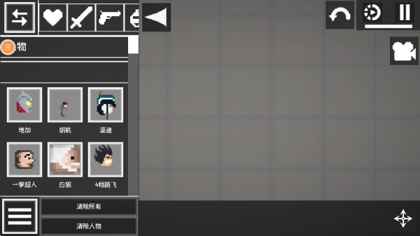 5. 轻点画面左侧的菜单栏,把菜单栏里的角色、武器道具之类的拖出地图,尽情自由编辑玩耍吧。
