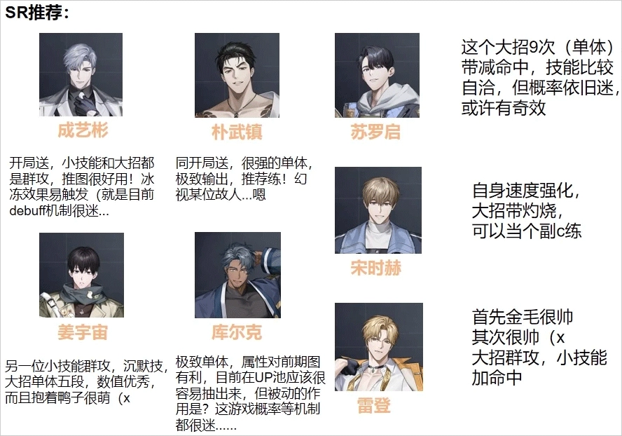 有SSR必练SSR,数值差别大,但是很多友友说非抽不到,那么推荐大家一些值得练的SR卡