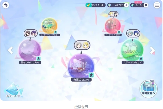 右下角是进入虚拟世界,可以选择5个团各自的世界,可以买家具提升综合力