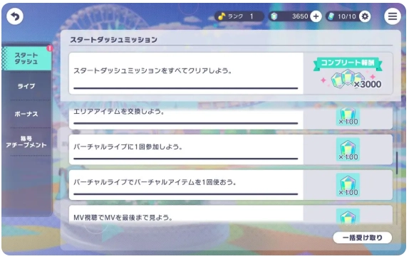 总体包括编成、育成、“ライブ衣装”【现场服装】、“キャラクターランワ”【角色等级】、“メンバー一覽”【会员名单】