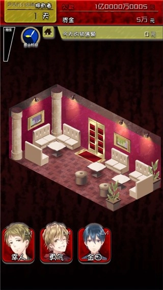 2、进入游戏后你会发现自己已经欠债额度达到1亿元,手上的资金才只有少的可怜的10万元。要怎样选择你的美男角色帮助你工作还清这一切的债务,随着时间的消失金额还在不断地上升。终于领会到了时间就是金钱的这一说法,多么痛彻的领悟啊,抓紧时间就是你啦,还能帮助你照顾自己的弟弟妹妹。