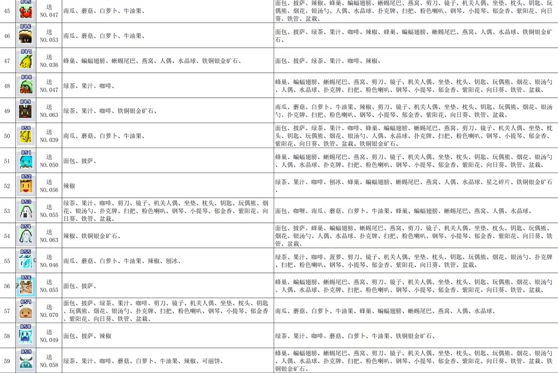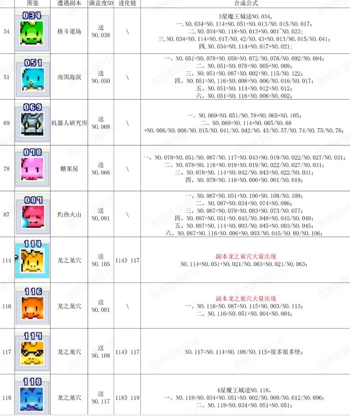 2、前期优先培养小黄龙这类食物相性好的魔物,也可重点培育 no.020 紫毛虫。