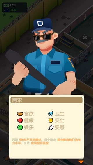 通过管控打架斗殴来提供自己的声望。智能化管理囚犯需求,随时满足他们的需求。为狱警提供最棒的安保装备。看守最危险的囚犯,必要时单独监禁他们。