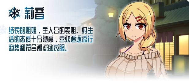 冬日狂想曲下载手机版是【ドージンオトメ】社在23年7月25日发布的一款互动SLG大作,时光荏苒,那次难忘的夏日回忆如今已成为半年前的往事。在这个寒假,我们的主人公再次回到乡下,与莉音姐姐、结衣姐姐和美雪姑姑重续前缘,为这段浪漫故事书写新的篇章。