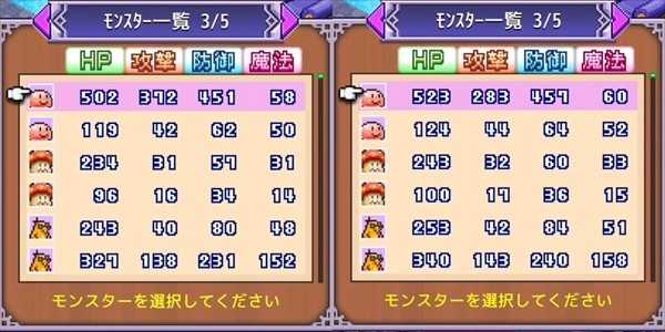 属性差异也很大。(*注意攻击。注意右侧的属性被提升到350铁矿石以便对比,因此所有洞穴怪物的等级加成和防御力都被加成了。)