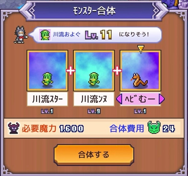 重要的是合并同种怪物时的“等级差加成”。根据你是否利用这一点,最终属性会有很大变化。