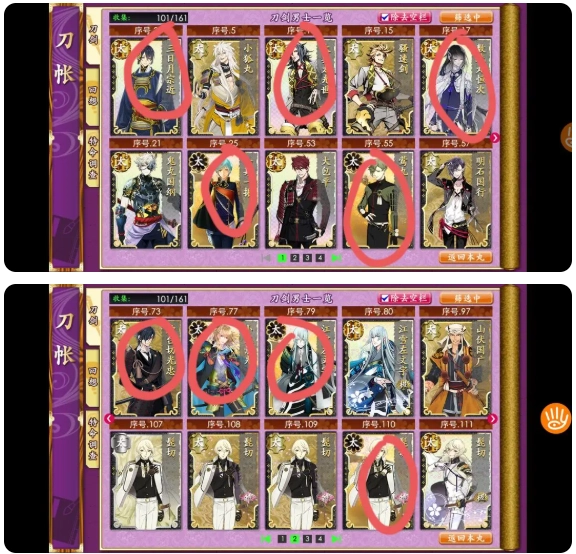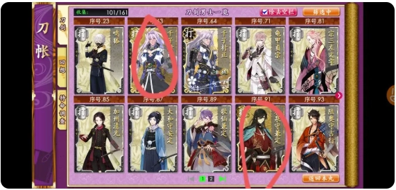 也不要把资源全浪光,留几千资源做刀装。最理想的情况下,你能锻出一队太刀,但不是什么太刀都能用来过8图。下面我画圈的是萌新能锻出来的靠谱的太刀。