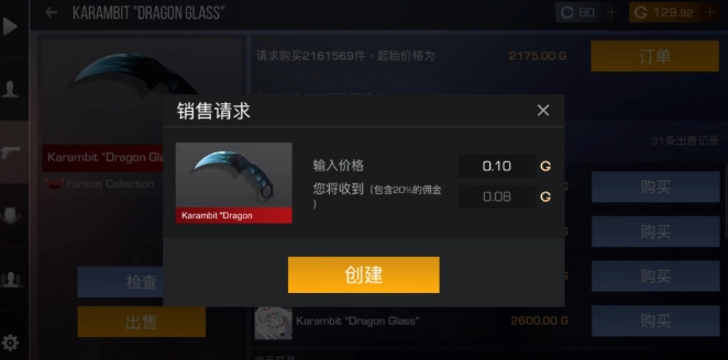 3、卖家看到订单价变化成买家设置订单价的瞬间去出售皮肤,售价为0.1g或者其他低金额,这样买家的本金就基本无损失。此步骤一定要快。