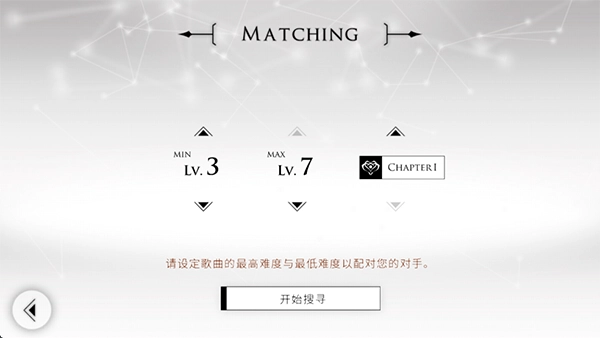 玩家自行设定难度范围和选择章节来随机匹配歌曲及对手。