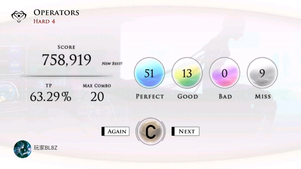 6、最后曲目结束后,连击次数越多,失误次数越少,得分也就越高。