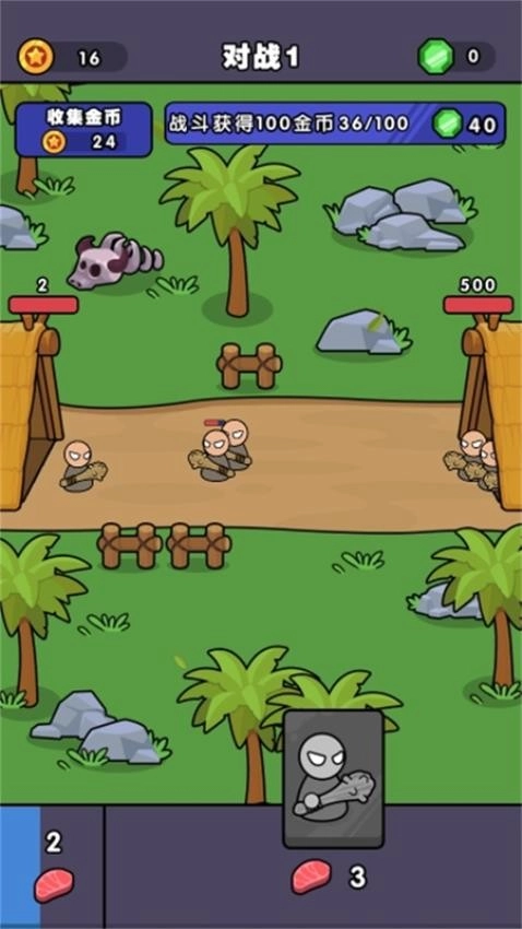 3、战斗时关注肉块【1】,卡牌需【3】肉,收集金币【15】,合理规划召唤单位。