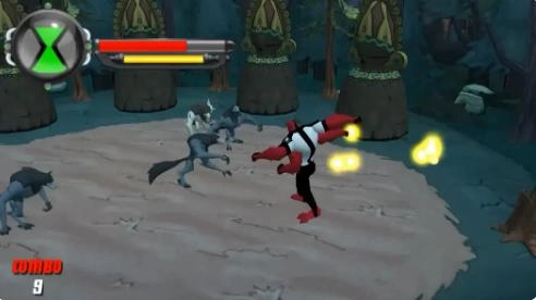 变身系统:长按 R键 激活Omnitrix,使用方向键或摇杆切换外星形态。每种形态有独立的能量槽(绿色),能量耗尽前主动解除变身可以快速回满能量。