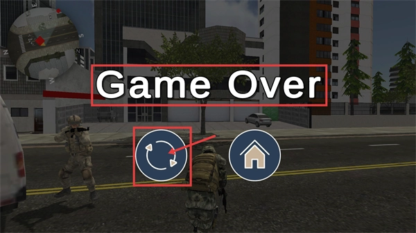 4、当界面出现【Game-Over】提示时,点击重玩按钮即可重新挑战当前关卡,也可以选择房屋图标返回主界面。