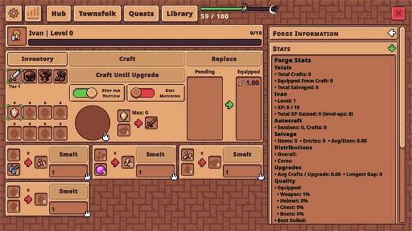 5、点击上方的“Townsfolk”选项可以制作各类武器装备,每次进行制作操作都会消耗不同种类的材料。