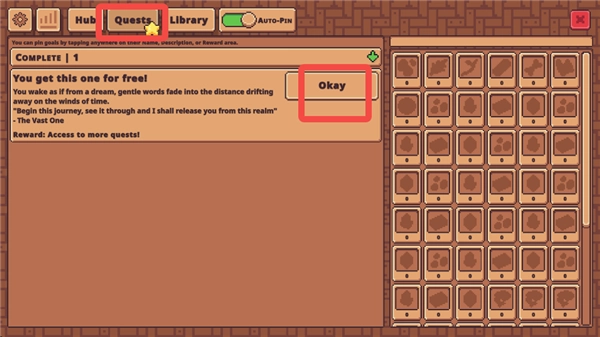4、在主界面点击“quests”按钮即可打开任务列表,完成列表中的任务不仅能获取丰厚奖励,还能解锁全新区域。