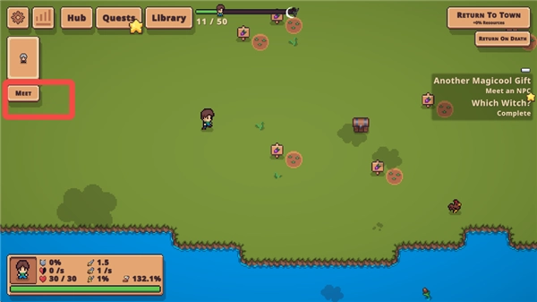 6、遇到一个NPC,点击【MEET】按钮。和他交谈后得知,他要盖房子需要一些木材,希望我们帮忙收集一些木材。