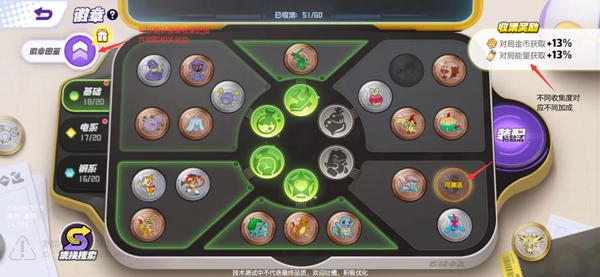 此外在收集满一栏的时候将会激活徽章专有技能,比方说初心之力就是集齐妙蛙种子、小火龙和杰尼龟即可激活,效果如下: