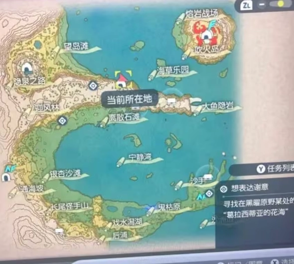 收集全部幽火后可以相遇花岩怪宝可梦,下面是幽火地点位置一览(其中一个幽火是任务强制收集了),建议晚上时间段去找幽火会更明显。