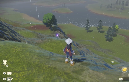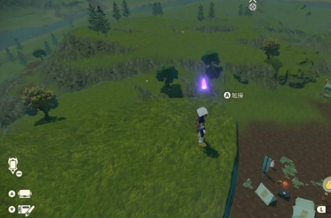 玫瑰岛右侧河岸对面陆地坡道上,果树附近