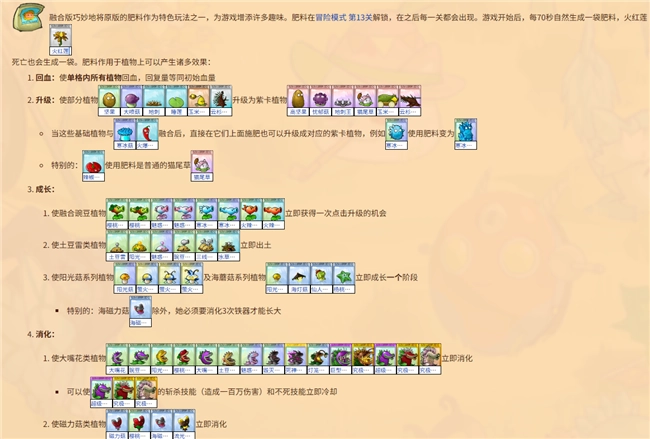 多数融合植物需在花园中手动融合,海妖菇、太阳能睡莲、汉堡王、除小汉堡、黑曜石大麦,以外的所有衍生植物、花盆类植物、三种礼盒、塔防植物无法在花园中获取