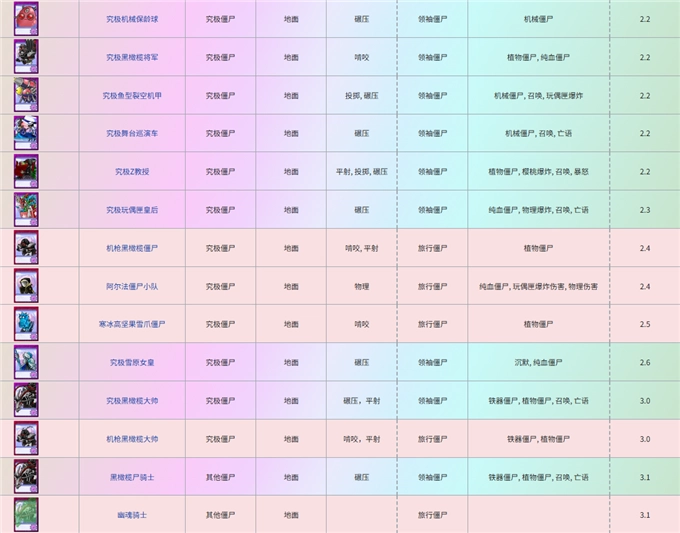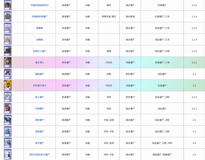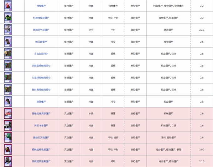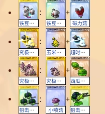寒冰路灯花、水雷、毁灭路灯花、究极阳光帝果、卷心菜迫击炮、窝瓜投手、究极冷寂加农炮、樱桃窝瓜、毁灭窝瓜、黄油黏黏菇、特种三线射手、聚爆窝瓜、究极爆破迫击炮、向日葵三叶草、大喷菇南瓜、大喷菇南瓜、究极魅惑南瓜、无妄菇、自信阳光窝瓜、红温帝果、究极红温帝果、西瓜南瓜、黄油窝刺、地雷窝瓜、毁灭大蒜、杨桃大喷菇