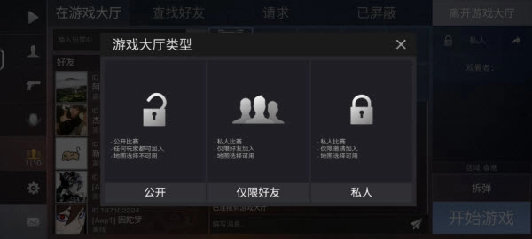 5、要是对地图或道具投掷不太熟悉,可以在好友列表里自己创建房间,选择私人房间,再根据自身情况挑合适的地图来跑图练习熟悉。