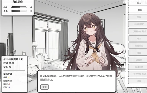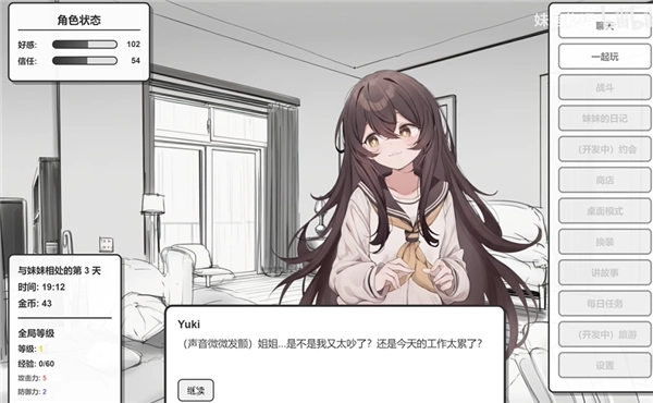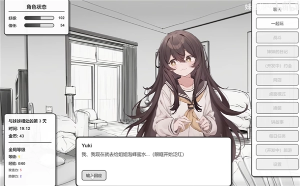 4、游戏为玩家提供了多种互动方式,玩家可以选择与Yuki一起聊天、外出游玩,甚至参与各种小游戏。