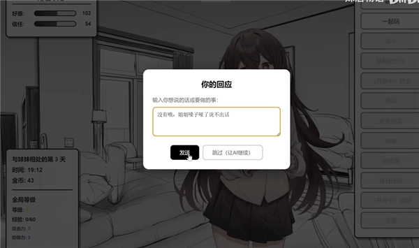 5、送礼:通过送礼物给妹妹,提升亲密度,解锁更多内容。