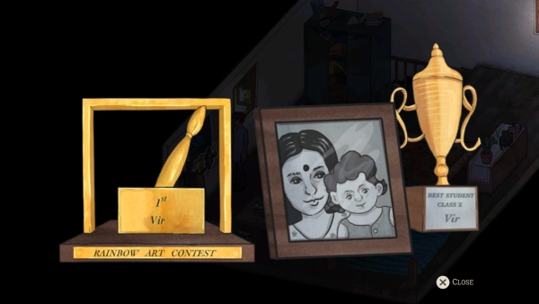 2、进入游戏剧情,在房间里进行探索,床头放着小时候和妈妈的合照。