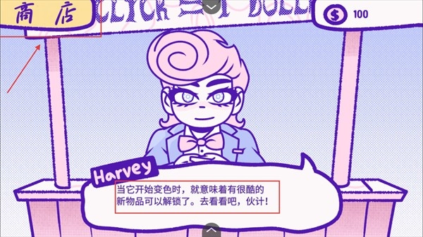 4、积累资金后点击【商店】标识解锁【针头-锤子-剪刀】等道具,用不同道具影响哈维的结局走向。