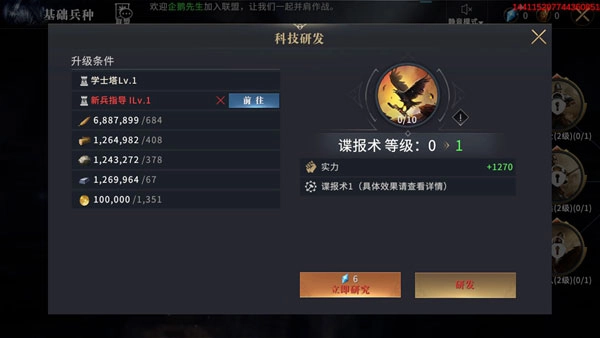 谍报术主要用于侦查,对于掠夺流领主来说,谍报术可以帮助领主了解目标领地的兵力部署及兵种信息。根据谍报术的侦查,领主可搭配克制兵种,从而降低攻城造成的损失。