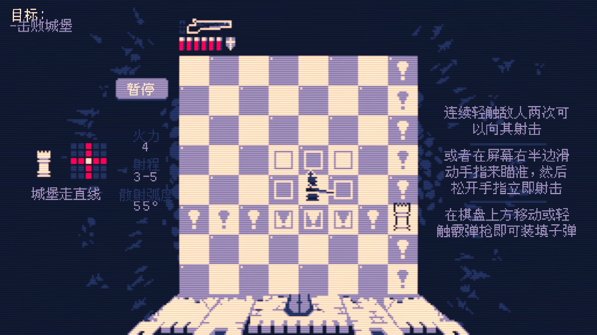 每个回合,你都得在移动国王和射击敌人之间做选择。每次射击之后,必须再次移动才能完成装弹。你要一边避免被将死,一边抓住时机击溃敌方的王,逐层突破关卡。