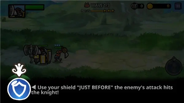左侧盾牌按钮用于防御,可反弹部分伤害。