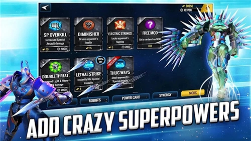 5、在终极格斗机器人的世界里,你可以从45个独具特色的机器人中挑选成员,打造专属于自己的最强战队。无论是神、脚斗士、喷火巨龙、高僧、军火库、武士还是忍者等不同类型的角色,都能根据你的喜好来选择;再搭配上更多机器人的变化模式,就能解锁全新的力量、动作和战斗体验!
