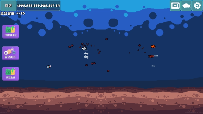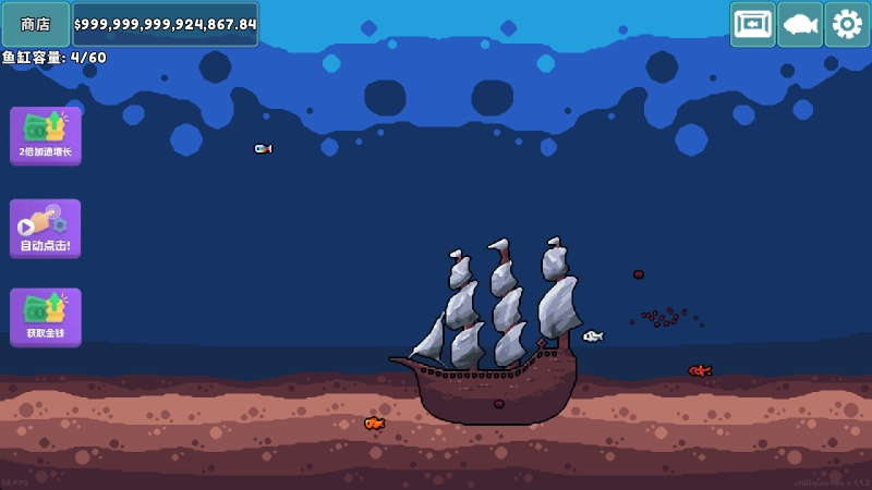 在商店的升级界面里,我们既能升级鱼粮,也能购买并升级其他鱼缸。