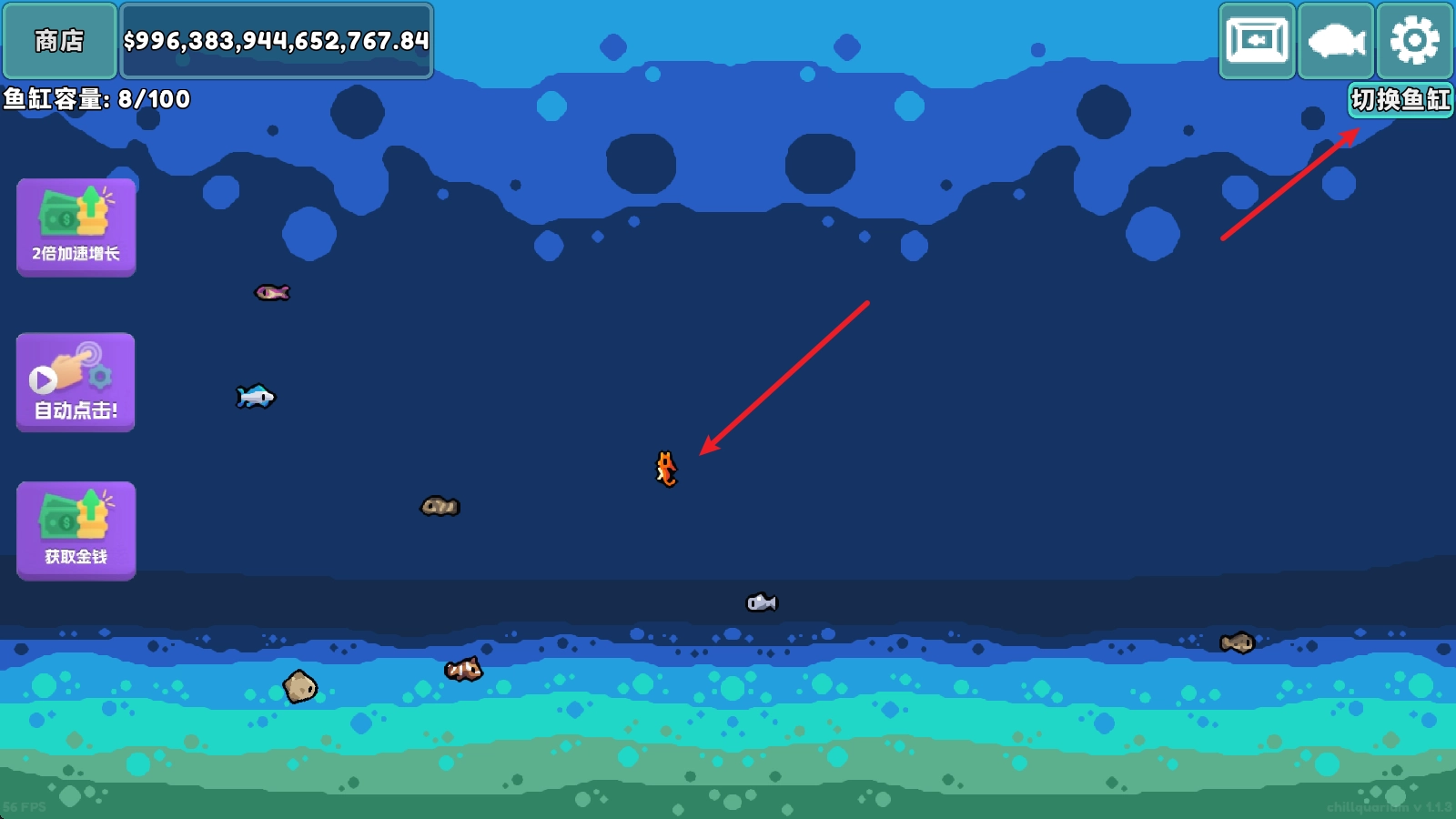 有了鱼缸之后,就能随时点击右上角切换,用来饲养不同类型的鱼儿。