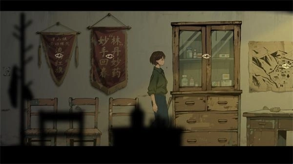 4、在各个场景里有不同的物品可以调查,点击带有眼睛的物品就可以调查。