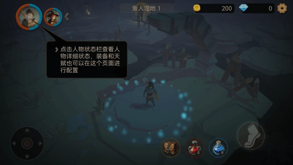 游戏主界面左侧为虚拟摇杆,用于控制角色移动。