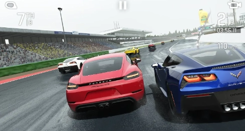 可展现细致的赛车损伤效果,无一遗漏的后视镜画面以及动态反射效果,从而营造真正的高清赛车画面。