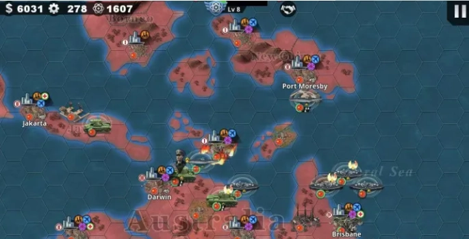 3、天朝:前期看似只有一个战场,实际上需要为三线作战做准备。开局给北京上经济地标,南京上工业地标。然后陈绍宽,榴弹炮,火箭炮调下来收复宝岛台湾。把韩国打掉之后稍微等一下,等日本把兵调下水之后用海军消灭他们。与此同时,中部的军队,尤其是重庆的重坦克要调下来把嘤髪打掉。爆两队满编重坦克,分别上古德里安和空将,调去欧洲伺机占领两个城。 中期先把日本打掉,这时苏联大概已经占领了北欧,古德里安和空将到达了欧洲。依靠空军帮助,古德里安可以不断连击收割欧洲的杂牌军(精锐应该被苏联消耗光了)。南部的军队继续进发征服澳大利亚。与此同时,组建舰队护送陆军渡海登陆加拿大和美国。