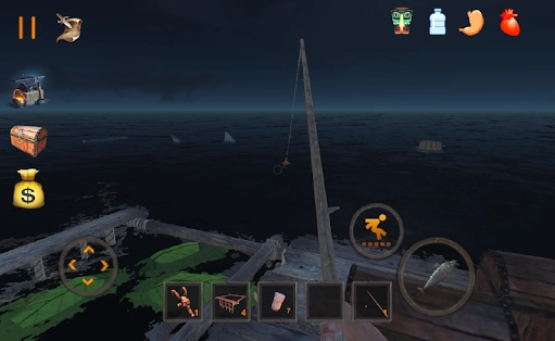 用手中的钩子打捞海上的各类漂浮物,这些漂浮物都是重要资源,可用来制作工具和武器。