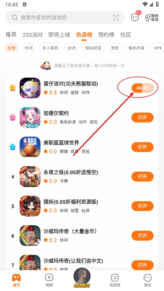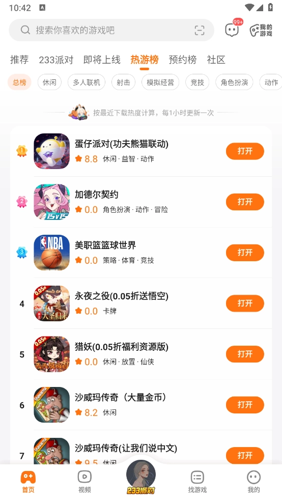 打开233乐园App后,可在首页通过滑动浏览或直接搜索的方式找到自己喜欢的游戏。