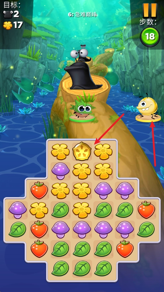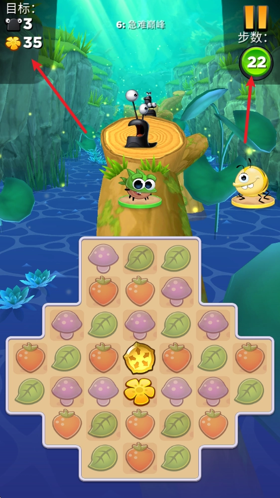 进入关卡后,左侧能看到关卡的目标,右侧显示的是剩余步数。
