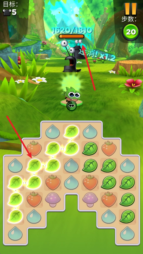 每当消除相应元素时,小怪物们都会积攒道具能量。