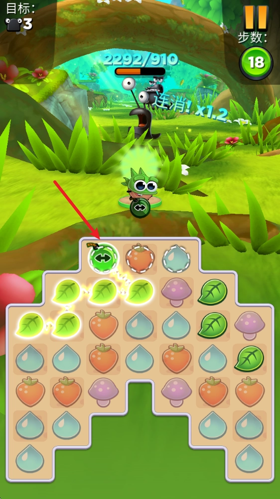 按住元素后,顺着相同元素拖动就能完成消除,以此对敌人造成伤害。