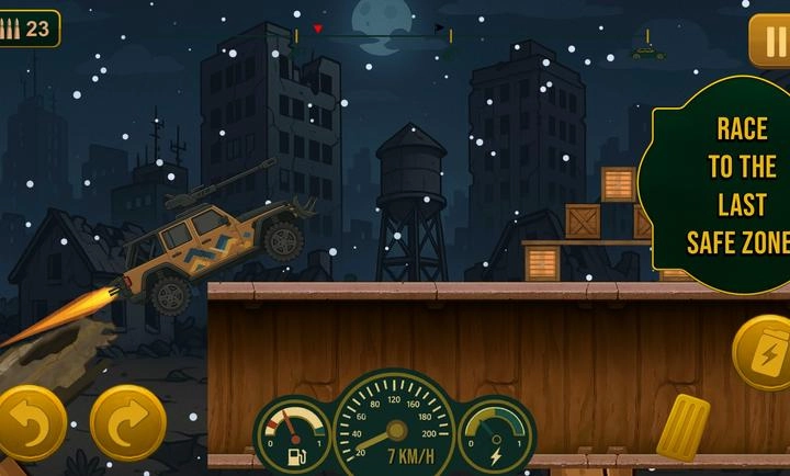 游戏采用经典的冲刺闯关玩法,你需要驾驶各类车辆一路疾驰抵达安全屋。通过收集更多金币,你可以升级不同设施、解锁更多车辆,助力自己跑得更远。同时,完成各类挑战任务能获取丰厚奖励,你还得不断击退僵尸以保护车辆,在末日世界中持续冲刺,努力生存下去。